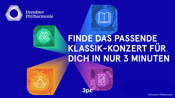 Konzertprogramm für die verträumte Genießerin, den risikobereiten Abenteurer, das wissbegierige Brain oder technikaffine Neugierige: Mit dem Konzertfinder geht die Dresdner Philharmonie ungewohnte, spielerische Wege, um neues Publikum für klassische Musik zu begeistern.
